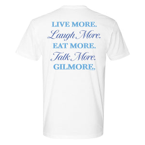Gilmore Girls Live More. Laugh More. Eat More. Talk More. Gilmore Adult Short Sleeve T-Shirt
