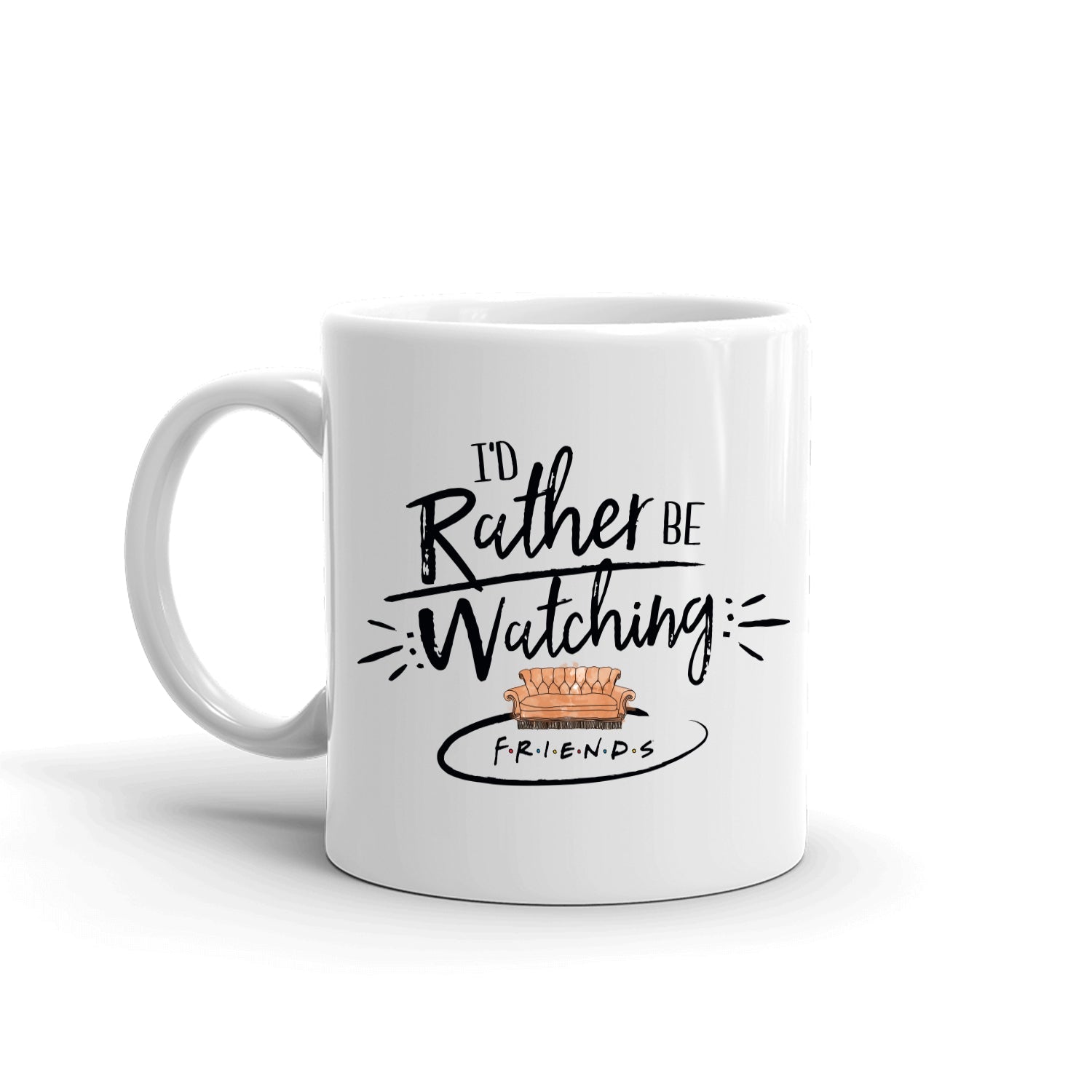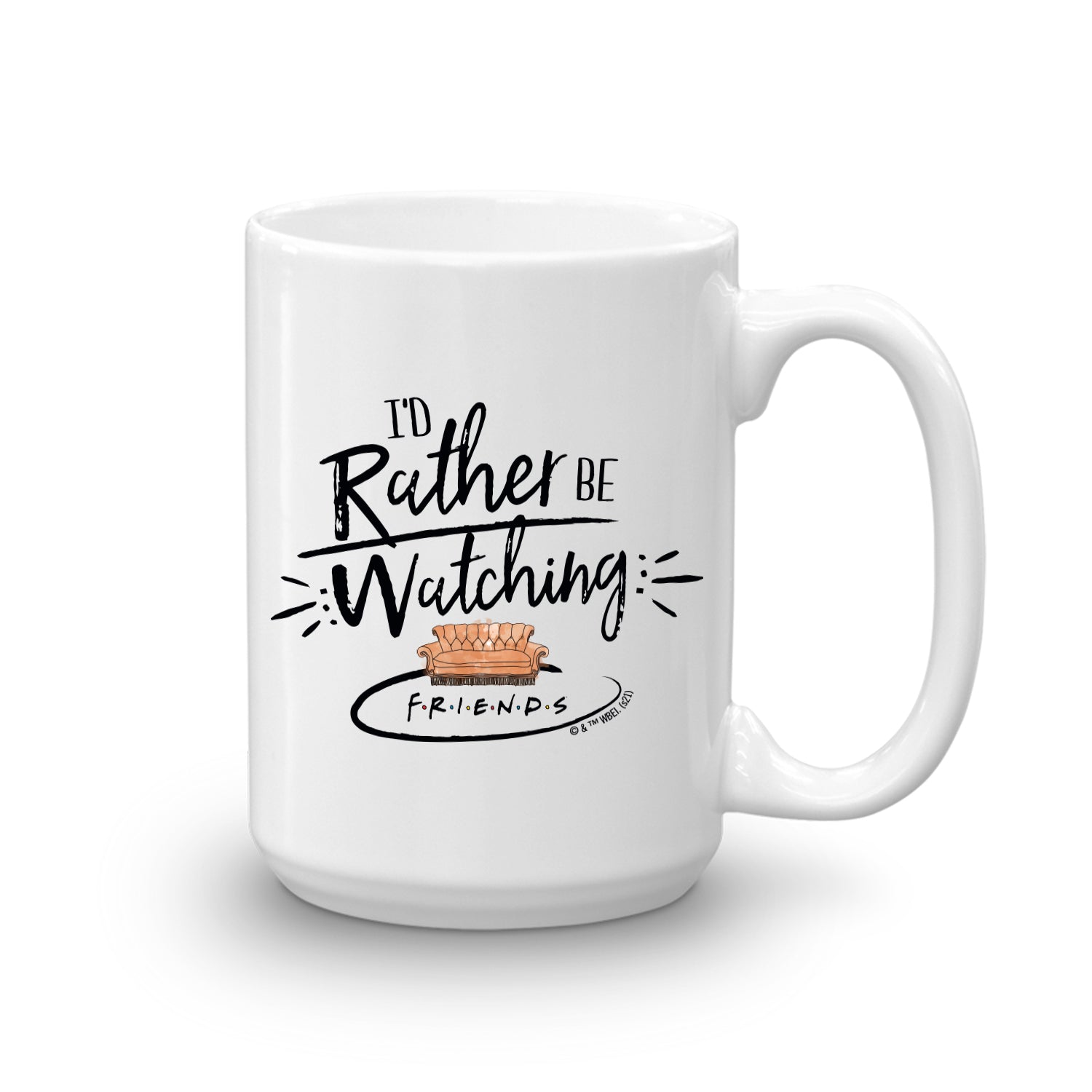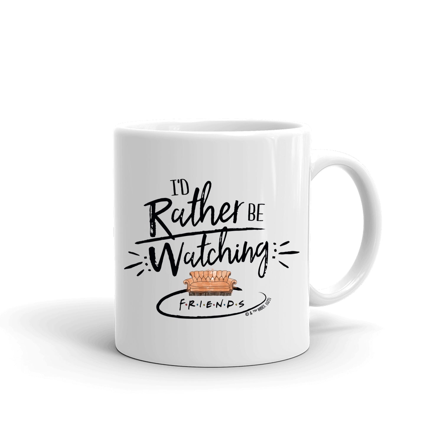 After a long day of teaching paleontology, meetings at Bloomingdales, cooking at a restaurant, checking the WEENUS, running to auditions, or singing at the local coffee house, you will love relaxing with this Friends I'd Rather Be Watching Friends White Mug in hand. This Friends mug is available in both 11 and 15 ounces for your convenience.