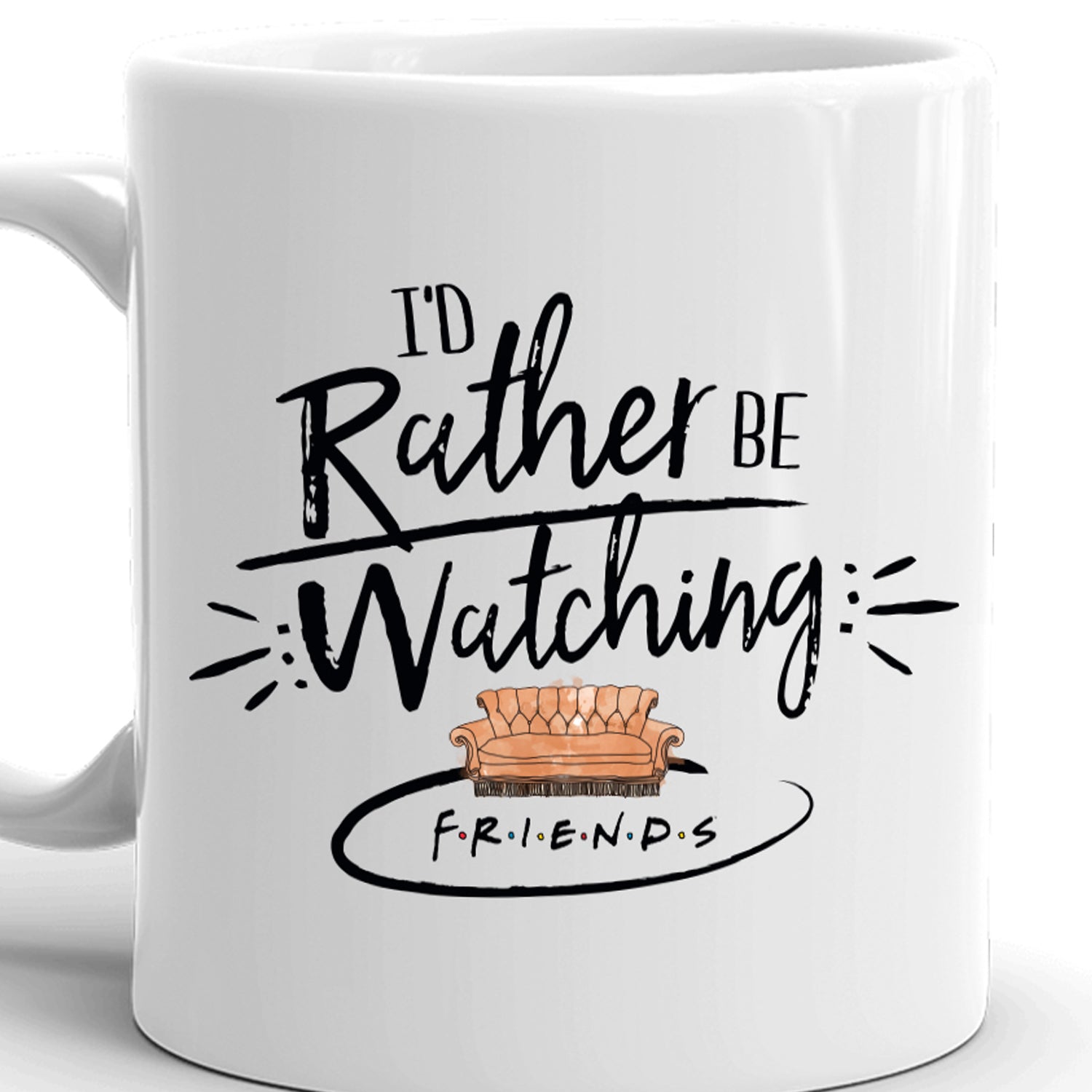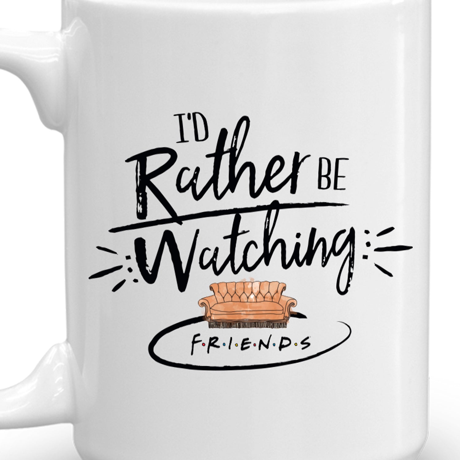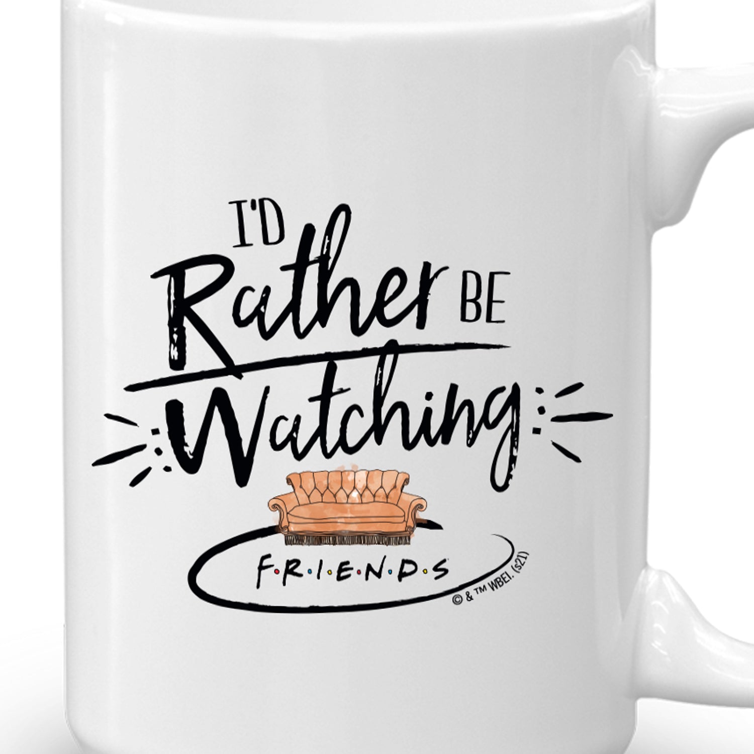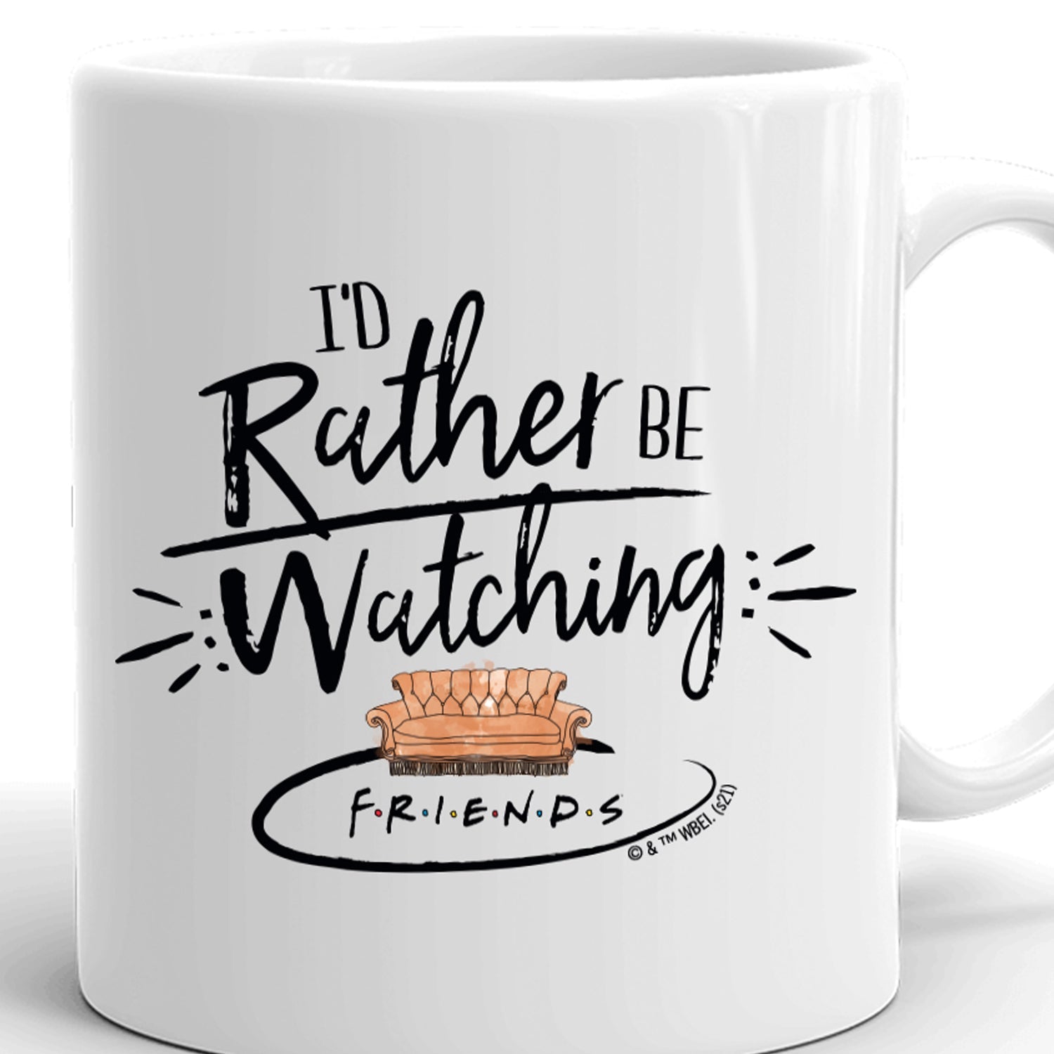 After a long day of teaching paleontology, meetings at Bloomingdales, cooking at a restaurant, checking the WEENUS, running to auditions, or singing at the local coffee house, you will love relaxing with this Friends I'd Rather Be Watching Friends White Mug in hand. This Friends mug is available in both 11 and 15 ounces for your convenience.