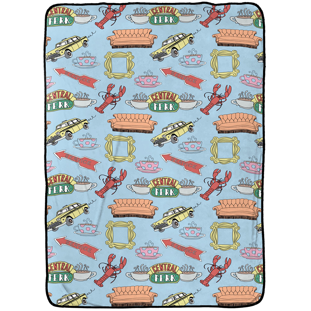 Colorful, cozy, and full of all of the Friends symbols that you love, this Friends Spring Doodles Blanket is perfect to cuddle up in as you keep up with Monica, Chandler, Rachel, Ross, Joey, and Phoebe. With a soft mink front and sherpa back, this blanket will make your Friends marathons that much better.