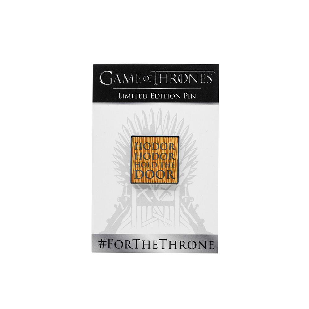 Commemorate Game of Thrones and the selfless hero Hodor with this exclusive, limited-edition Hodor Hold the Door collector's pin inspired by the HBO award-winning series. Featuring a wooden door-inspired background and "Hodor Hodor Hold the Door", this enamel pin is a must-have for fans of Bran and Game of Thrones alike.