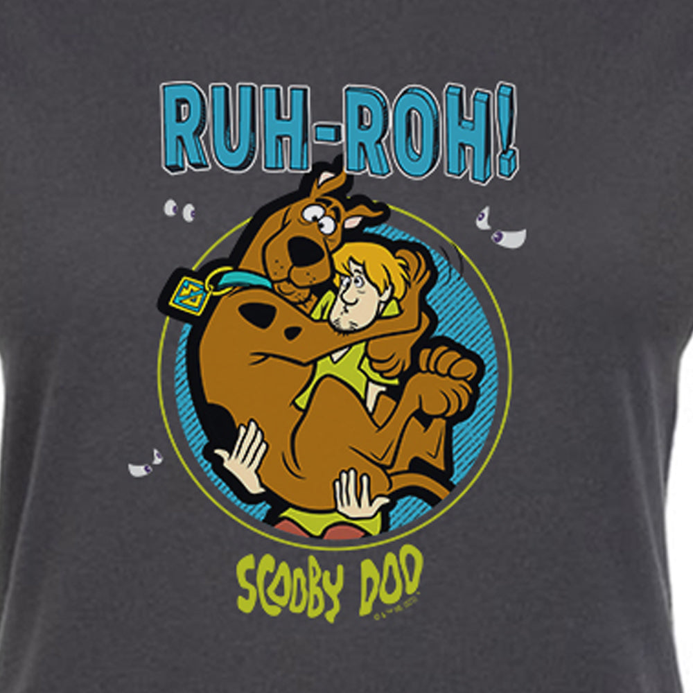 It's no mystery that this Scooby-Doo RUH-ROH Women's Short Sleeve T-Shirt will become your new favorite tee! Featuring Scooby in Shaggy's arms surrounded by his classic line, this form-fitting tee is perfect to wear during your Scooby-Doo marathons.