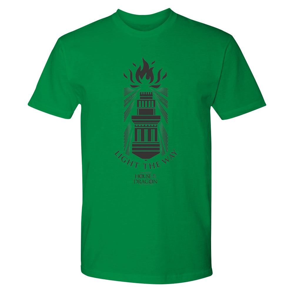 Light the Way to your allegiance of the most prestigious House Hightower, with this House of the Dragon Adult Sleeve T-Shirt featuring House Hightower Sigil!