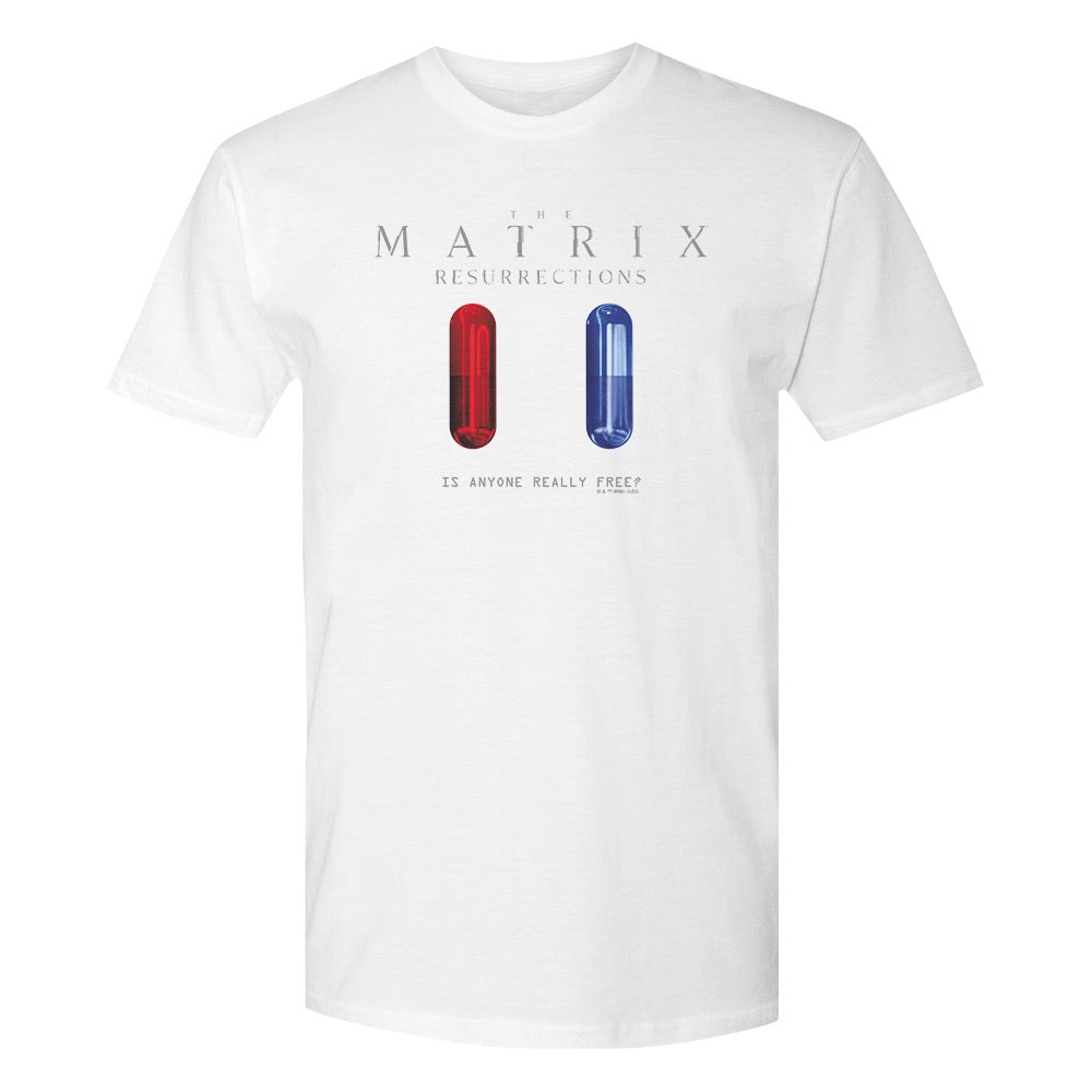 Choose your fate with The Matrix Is Anyone Really Free? Adult Short Sleeve T-Shirt featuring the red and blue pill design.