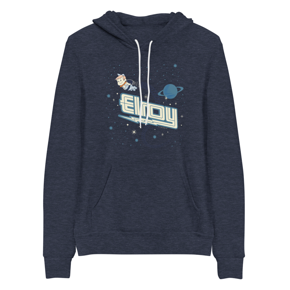 Give your marathons of The Jetsons a cozy, stylish upgrade with The Jetsons Elroy Hooded Sweatshirt. Featuring Elroy Jetson zipping through space on the front and a cozy inside build, this hooded sweatshirt from The Jetsons gives your wardrobe an out-of-this-world upgrade.