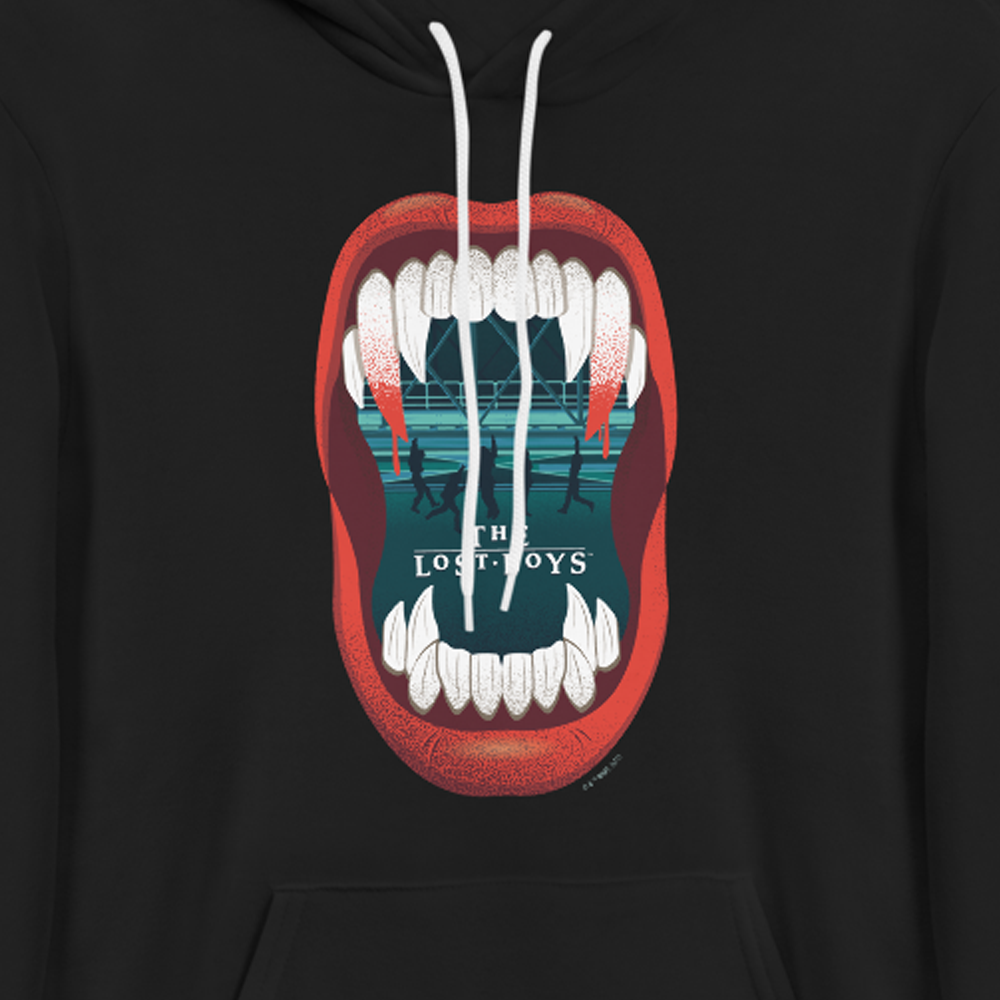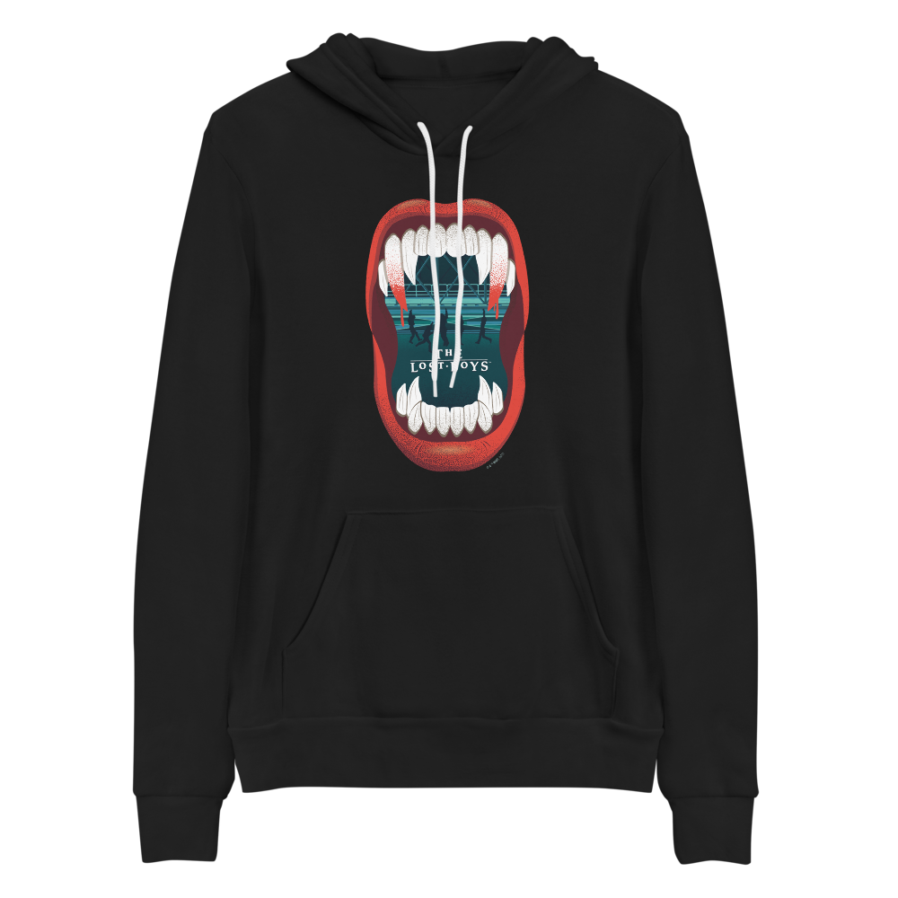 The drop from the bridge can get pretty chilly...Be sure to stay warm as you keep up with Santa Carla's gang of vampires by wearing The Lost Boys Chompers Hoodie. With an iconic design that any fan will recognize, this hoodie is the perfect addition to your style.
