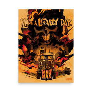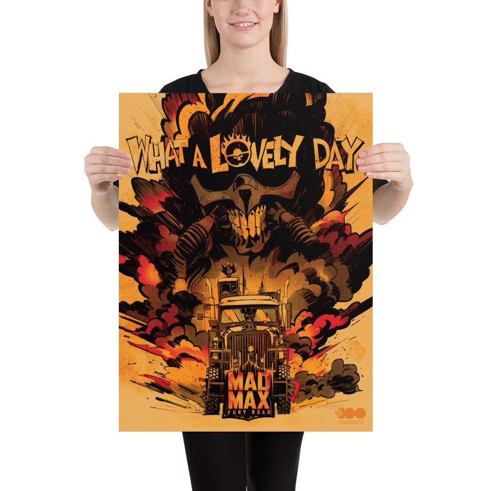 Rev up your style with our WB 100 Mad Max What a Lovely Day Poster. Celebrate the intensity of the Mad Max universe with this visually striking poster, a unique addition to any fan's collection.