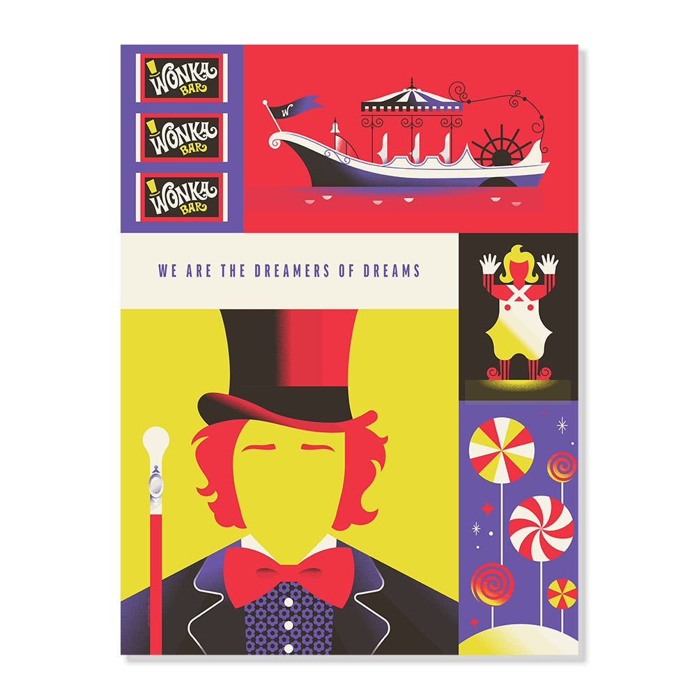 Featuring Willy Wonka with iconic art from the film, this WB 100 Willy Wonka & The Chocolate Factory Premium Satin Poster will have you dreaming of days in the Chocolate Factory. Perfect for offices, bedrooms, media rooms, and more, this poster lets everyone know how much you love Willy Wonka & The Chocolate Factory.