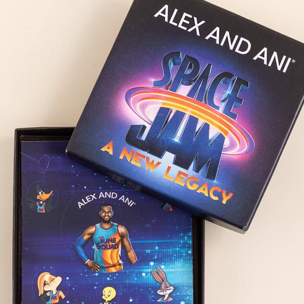 Wear this Space Jam charm bangle and celebrate the most iconic basketball duo of all time - Bugs and Lola! Featuring 3 charms: a color-infused basketball, and the faces of Bugs and Lola from Looney Tunes