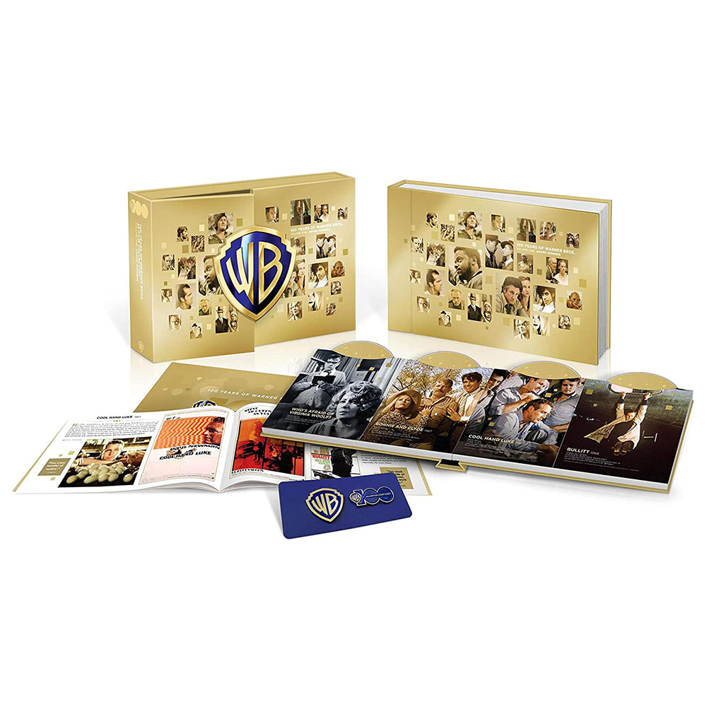 The 100th anniversary Blu-ray + Digital giftset includes commemorative packaging, digital code for all 25 films, collectible WB shield pins, and 28-page booklet filled with original posters, production notes, and behind-the-scenes photos.